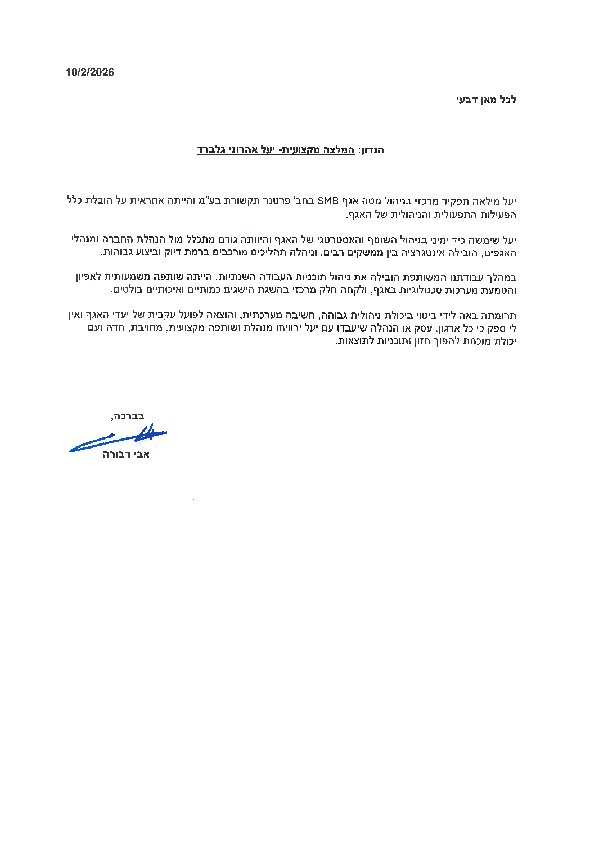 יעל אהרוני גלברד, עם ניסיון של יותר מ-20 שנה בתור מנהלת תהליכים בכירה בארגונים גדולים כולל ניהול צוותים, שיפור תהליכים, הפחתת עלויות והטמעת כלים מתקדמים.